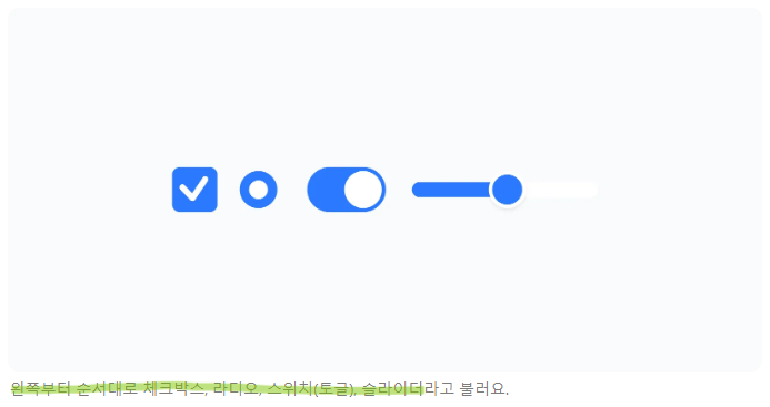 컨트롤 컴포넌트는 사용자가 선택지를 특정할 수 있도록 하는 요소