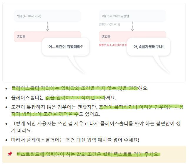 사용자가 입력해야 하는 예시를 제공하는 용도로 사용