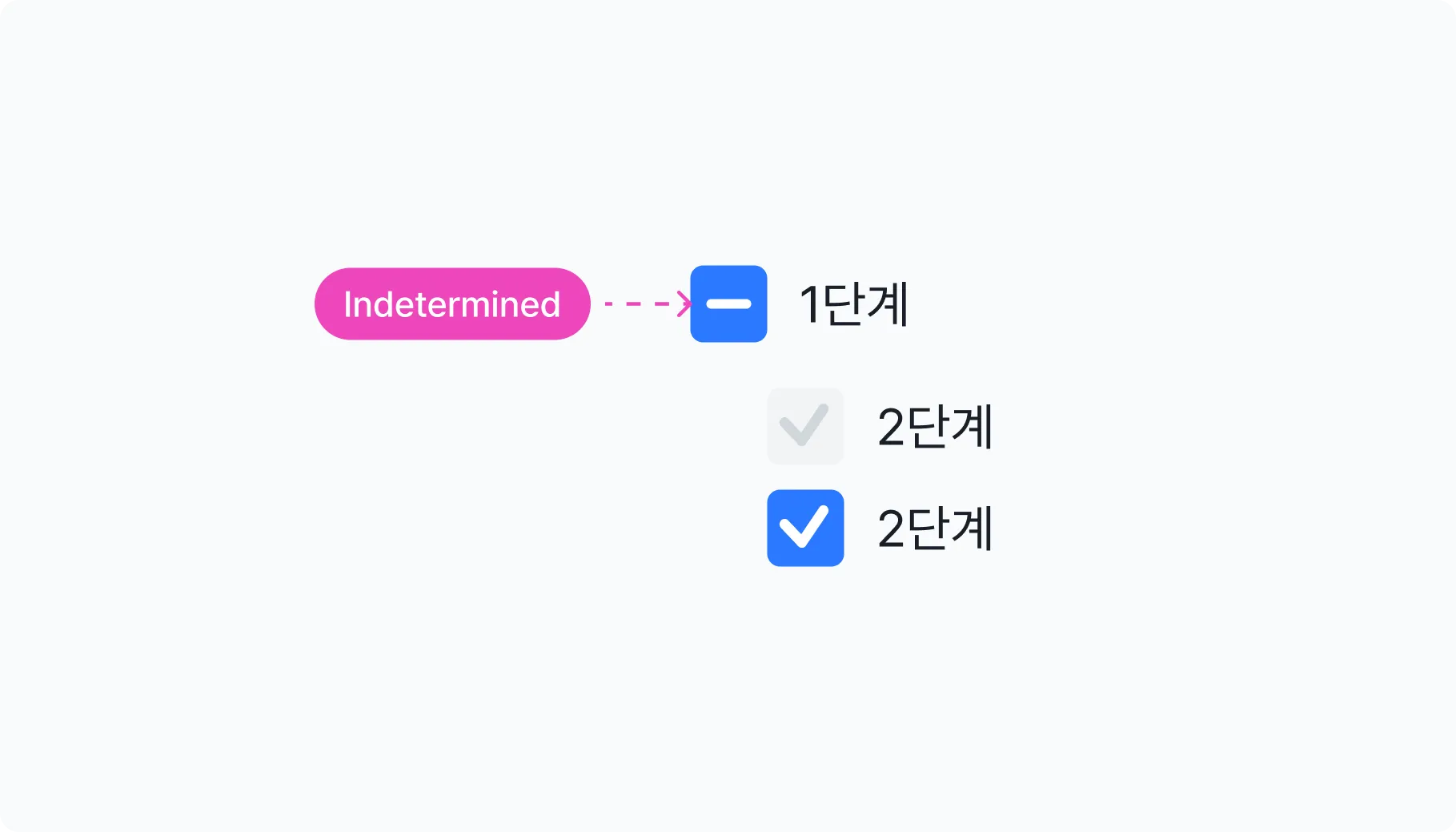 하위 항목 일부를 체크하거나 해제하면 상위 항목의 상태가 '결정되지 않은'이라는 뜻의 Indetermined 상태로 변함
