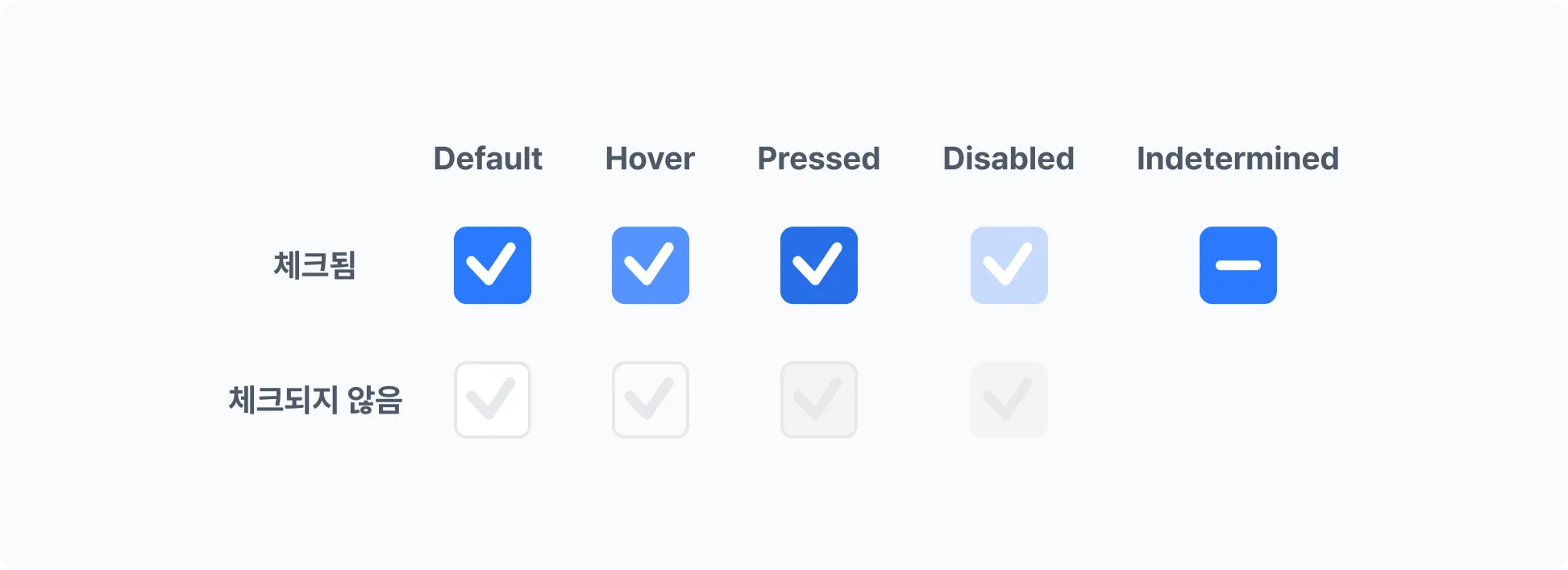체크박스는 기본적으로 2가지 의사 상태를 가지는데