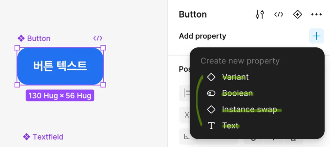 배리언츠를 제외하고 피그마 컴포넌트를 만들 때 설정할 수 있는 프로퍼티 3가지임