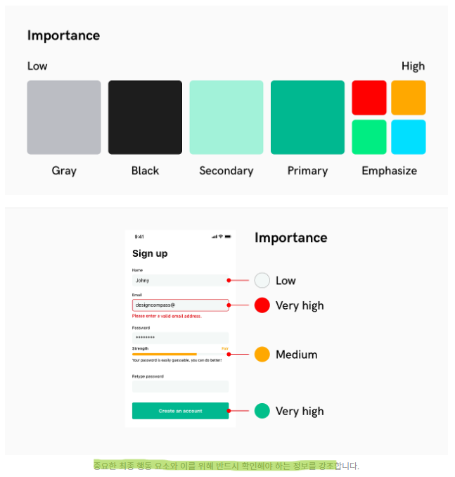 페이지 내 중요도에 따라 색 사용