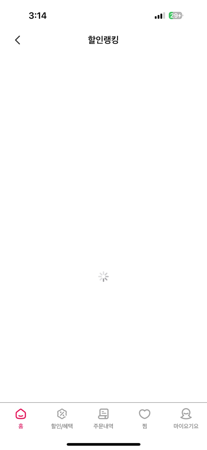 요기요의 로딩 화면을 보면 할인 랭킹에서는 스피너 아이콘을 지원하고 배달 카테고리에서는 애니메이션을, 하단 네비게이션 바를 이동하면 컨테이너가 뜨는 신기한 경험을 할 수 있다...⭐
