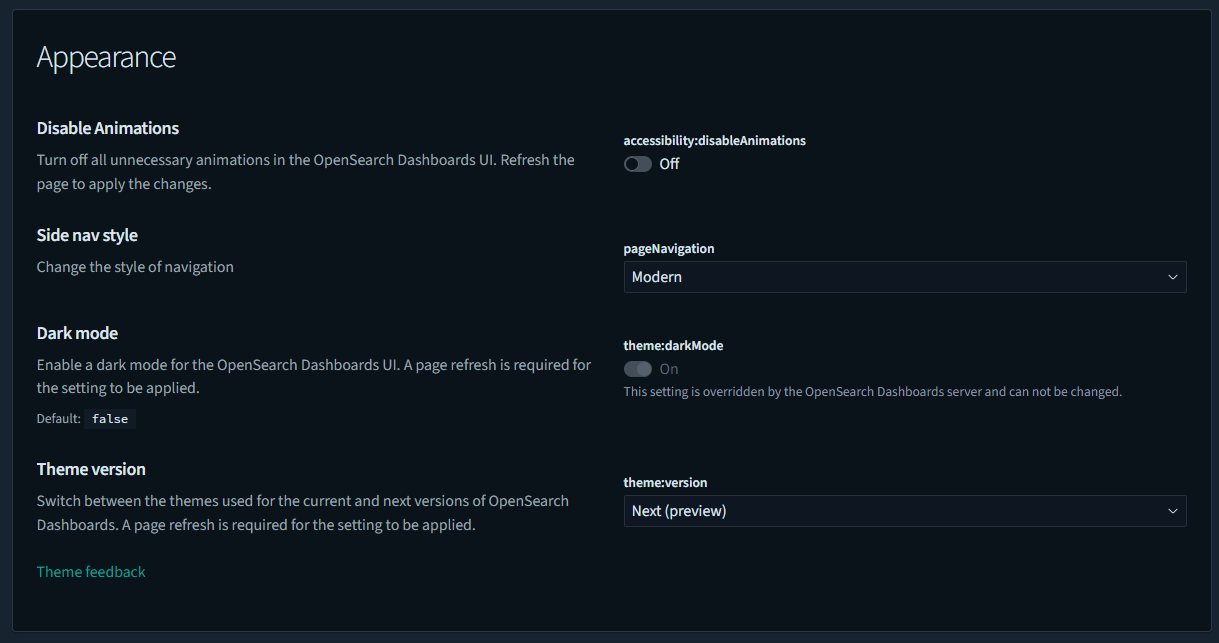 opensearch dashboards의 테마 커스터마이징이 가능