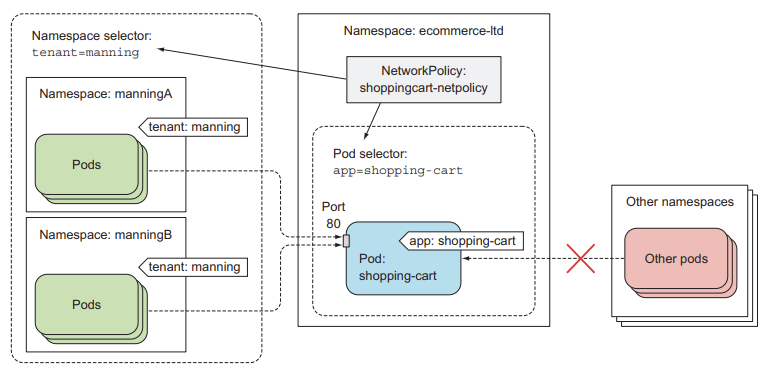 - namespaceSelector: # 해당 테넌트의 pod에서만 접근 가능