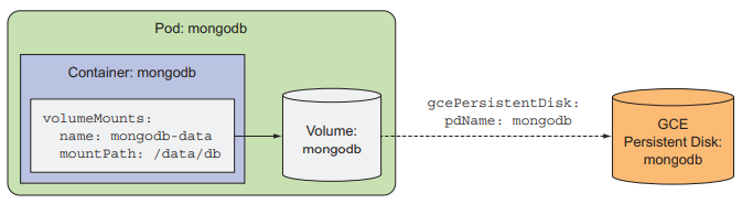 gcePersistentDisk 볼륨을 사용한 이유는 쿠버네티스 클러스터가 GKE에서 실행되기 때문이다. 클러스터를 다른 곳에서 실행하면 인프라에 따라 다른 유형의 볼륨을 사용하면 된다.
