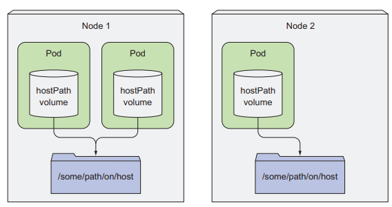그러나 hostPath 볼륨은 pod가 설정된 노드에 민감하게 작용해서 동일한 노드에서만 데이터가 유효하다. 때문에 단일 노드 클러스터의 지속되는 스토리지로 시범적으로 사용하는 경우가 많다.