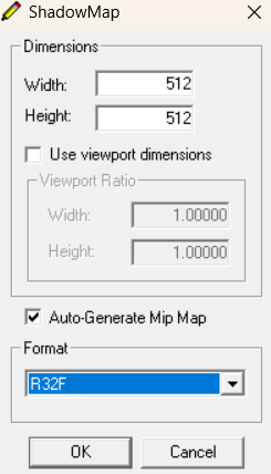 을 더블클릭하여 포맷을 R32F로 수정한다. 충분한 많은 깊이를 표현하기 위해 32비트 값으로 바꾸는 것이다.CreateShadow
