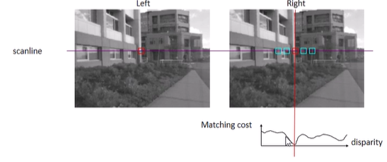 - 그 window를 다른 이미지의 scanline을 따라 이동시키며 best match