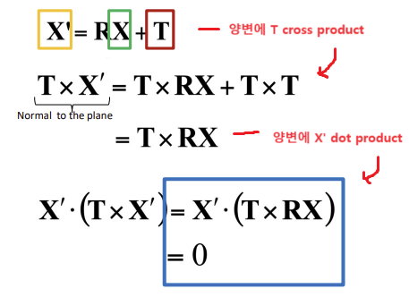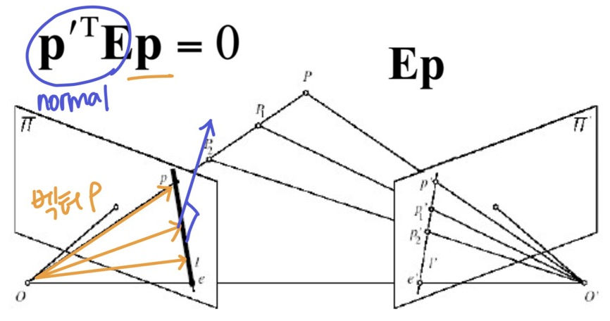 p'을 기준으로 하면 Ep는 왼쪽 camera coord에서 본 epipole plane의 normal