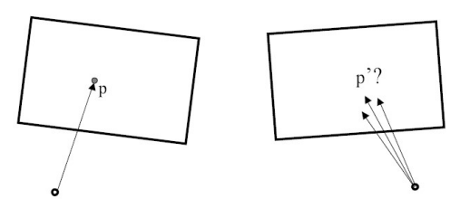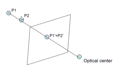 : 3D 공간에서 다른 두 점이, pp에 같은 점으로 projection되는 경우, depth를 알 수 없음