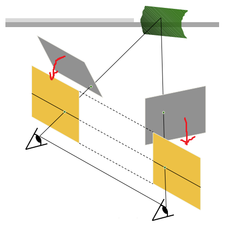 - parallel하지 않은 두 이미지가 평행할 수 있도록 가상 pp로 reprojection하여 x축으로 평행이동 한 것처럼 만든다