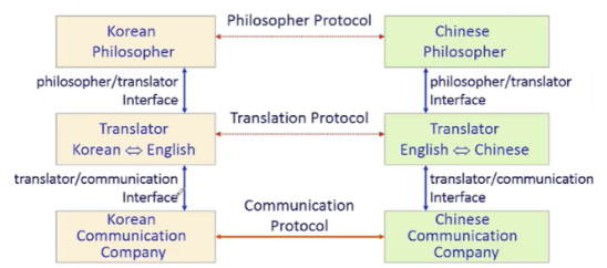 → 상대방과 전화로 소통만 되면 됨 (전화 방식이 어떻게 구성되어있는지는 관심 없음, 전화 서비스만 필요)
