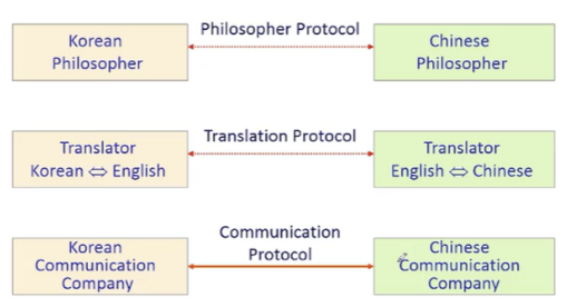 - 다른 레이어 간에는 통신하는 프로토콜이 존재하지 않음