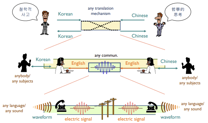 → 전화 신호를 네트워크로 전달하면 됨 (전화 신호가 영어인지, 말인지 관심 없음)