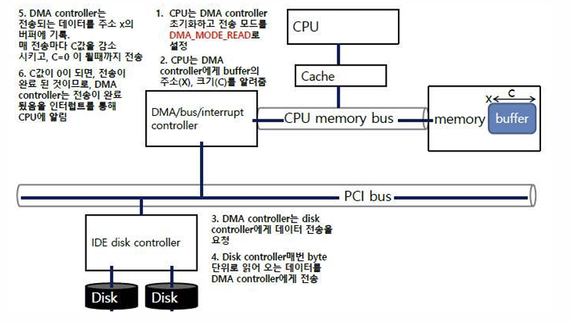 - 하지만 DMA컨트롤러가 비싸고, CPU가 처리해주는 것보단 느리다
