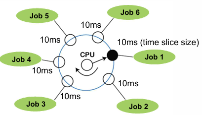 - 각 일은 time slice가 주어지고, time slice만큼 실행하면 다른 일로switch