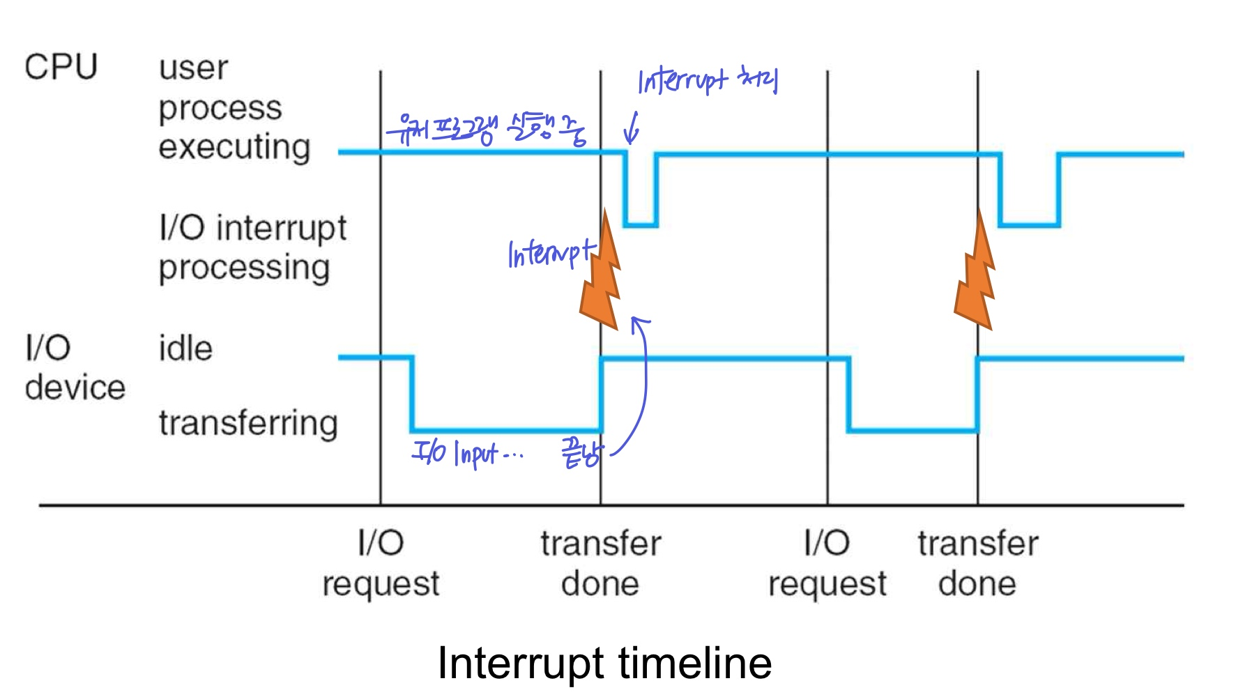 CPU는 메모리 일만 하다가, interrupt가 오면 I/O일을 하게됨