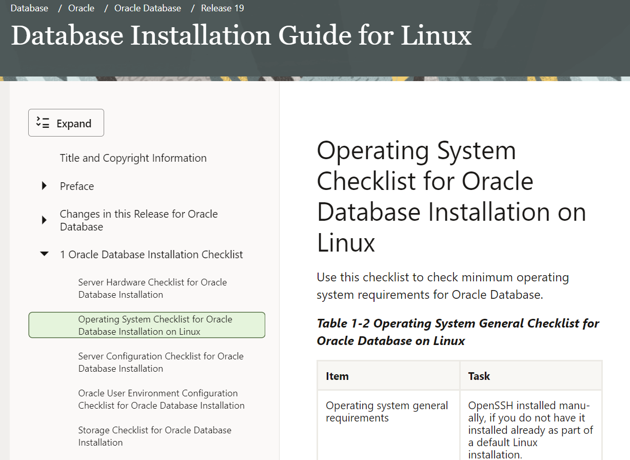 https://docs.oracle.com/en/database/oracle/oracle-database/19/ladbi/oracle-database-installation-checklist.html#GUID-E847221C-1406-4B6D-8666-479DB6BDB046