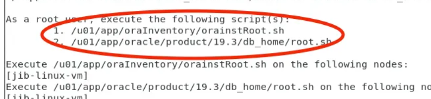 [ojisu@db-master XE]$ . runInstaller -silent -responseFile $ORACLE_HOME/install/response/db_install.rsp /usr/bin/dirname: invalid option -- 'b' Try '/usr/bin/dirname --help' for more information. Launching Oracle Database Setup Wizard... [WARNING] [INS-13014] Target environment does not meet some optional requirements. CAUSE: Some of the optional prerequisites are not met. See logs for details. /u01/oraInventory/logs/InstallActions2023-09-13_03-40-09PM/installActions2023-09-13_03-40-09PM.log ACTION: Identify the list of failed prerequisite checks from the log: /u01/oraInventory/logs/InstallActions2023-09-13_03-40-09PM/installActions2023-09-13_03-40-09PM.log. Then either from the log file or from installation manual find the appropriate configuration to meet the prerequisites and fix it manually. The response file for this session can be found at: /u01/app/oracle/product/19/XE/install/response/db_2023-09-13_03-40-09PM.rsp You can find the log of this install session at: /u01/oraInventory/logs/InstallActions2023-09-13_03-40-09PM/installActions2023-09-13_03-40-09PM.log As a root user, execute the following script(s): 1. /u01/app/oracle/product/19/XE/root.sh Execute /u01/app/oracle/product/19/XE/root.sh on the following nodes: [db-master] Successfully Setup Software with warning(s).