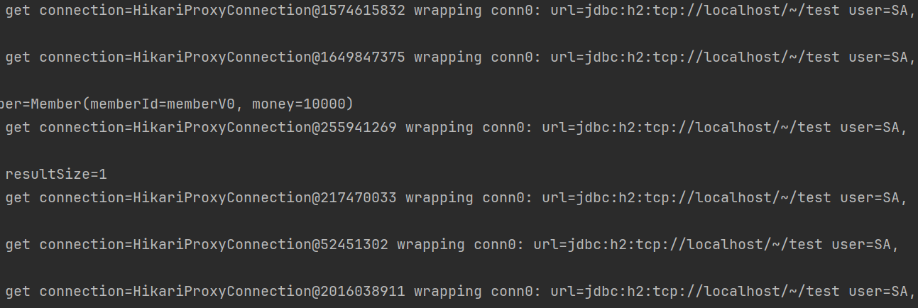 //커넥션 풀링: HikariProxyConnection -> JdbcConnection