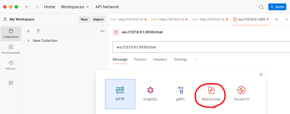 포스트맨은 표준 websocket 프로토콜만 지원하고 sockJS가 사용하는 폴백 프로토콜을 처리하지 못한다. 그래서 sockJS를 활성화하면 표준 websock경로가 아닌 sockJS경로가 추가된다. 또 최근에는 거의 웹소켓을 지원하기 때문에 굳이 sockJS를 쓰지 않아도 된다고 한다(확실치 않음)