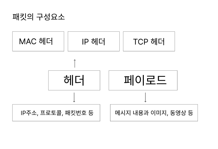 헤더는 수신처를 나타내는 주소같은 제어정보가 있고, 데이터에는 실제로 운반되는 내용이 들어가 있다.