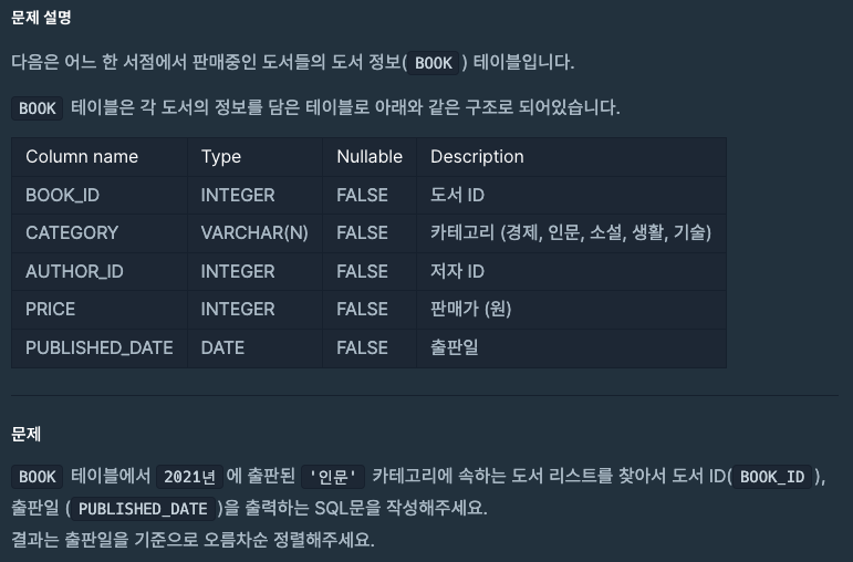 SELECT BOOK_ID,DATE_Format(PUBLISHED_DATE, '%Y-%m-%d') as PUBLISHED_DATE from BOOK WHERE CATEGORY = '인문'