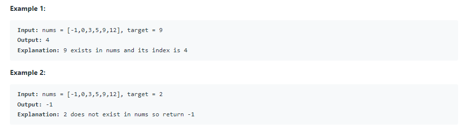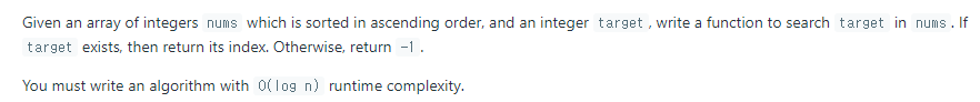 반대로 target < nums[mid] 라면 target은 인덱스 start ~ mid-1 사이에 존재할 수 있다.