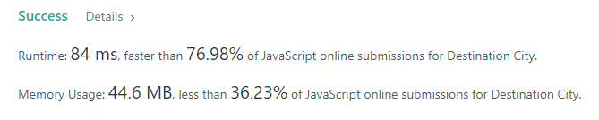 이 상태에서 각 path의 도착지들을 순회하면서 map 객체에 key 값으로 존재하지 않는 도시가 최종 도착 도시가 된다.