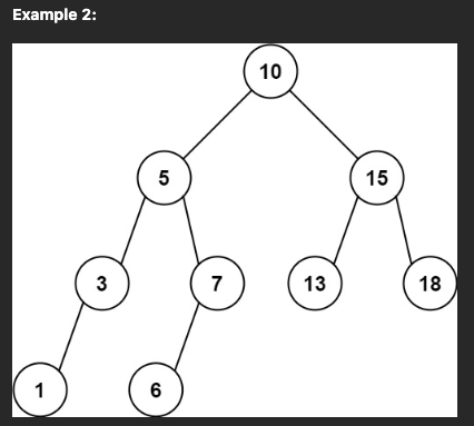 Input: root = [10,5,15,3,7,13,18,1,null,6], low = 6, high = 10