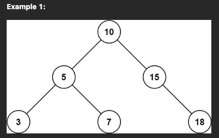 Input: root = [10,5,15,3,7,null,18], low = 7, high = 15