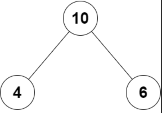 Explanation: The values of the root, its left child, and its right child are 10, 4, and 6, respectively.