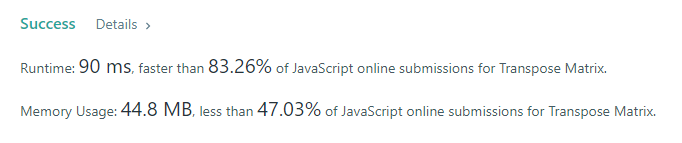 먼저 새로운 행렬을 원본 행령의 가로와 세로 길이를 바꾸어서 새로 생성해주고 for문을 돌면서 i === j 라면 대각 성분인것이므로 그대로 arr[i][j] 에 값을 넣어주고 i!=j라면 arr[j][i] 에 matrix[i][j] 값을 넣어주면 된다.