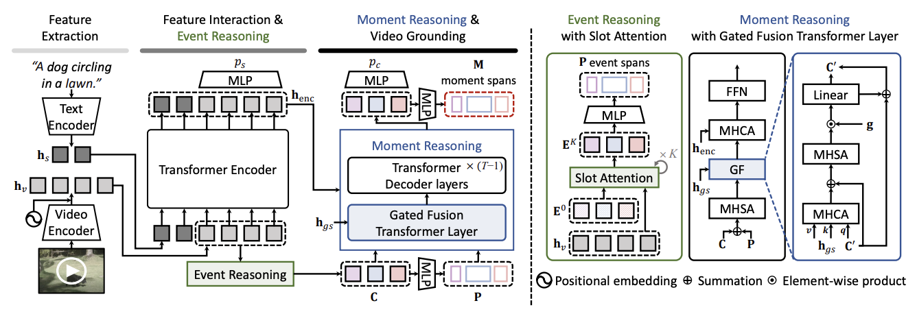 - Event Reasoning: Slot Attention으로 N개의 event slot 만듬 (이것이 곧 moment query)