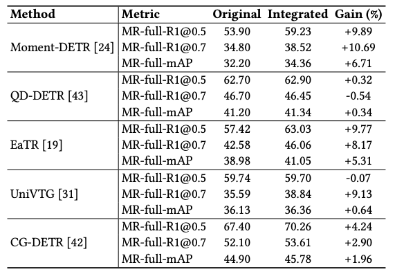 - Plug-in 방식으로 기존 모델(CG-DETR 등)에 결합 가능