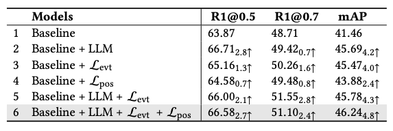 - baseline은 QD-DETR이고 각 구성요소에 따른 성능증가