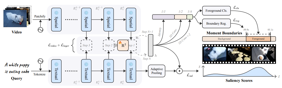 Lvideo =λvideo B1b∈B∑InfoNCE(evb,eqb)Llayer =λlayer K1k∈K∑InfoNCE(evk,eqk)
