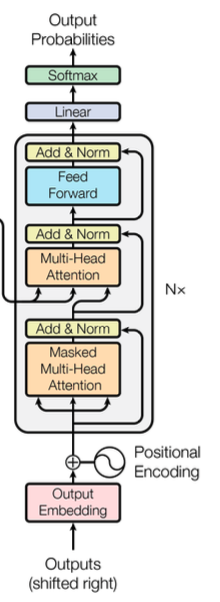 인코더와 마찬가지로, Positional Encoding 사용해 [ 입력 문장에 대한 정보 + 단어의 위치 정보 ] 로 Attention의 입력으로 들어감