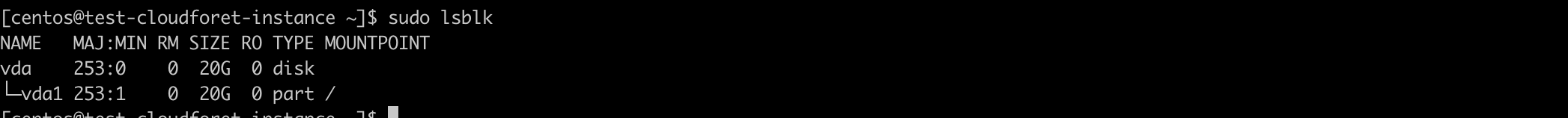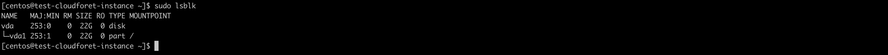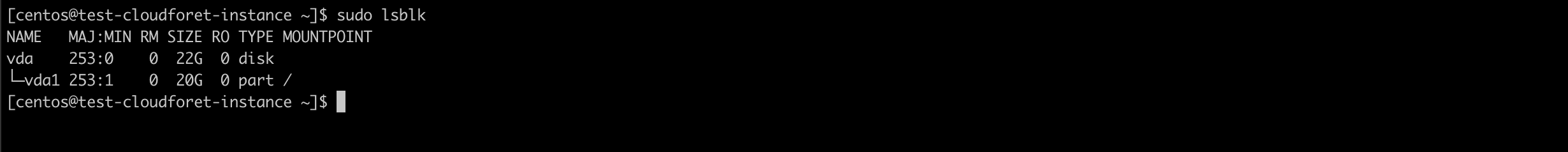 현재 가상 블록 디바이스(virtual device a, vda) 하나에 단일 파티션(vda1)으로 저장장치가 구성된 것을 볼 수 있다.