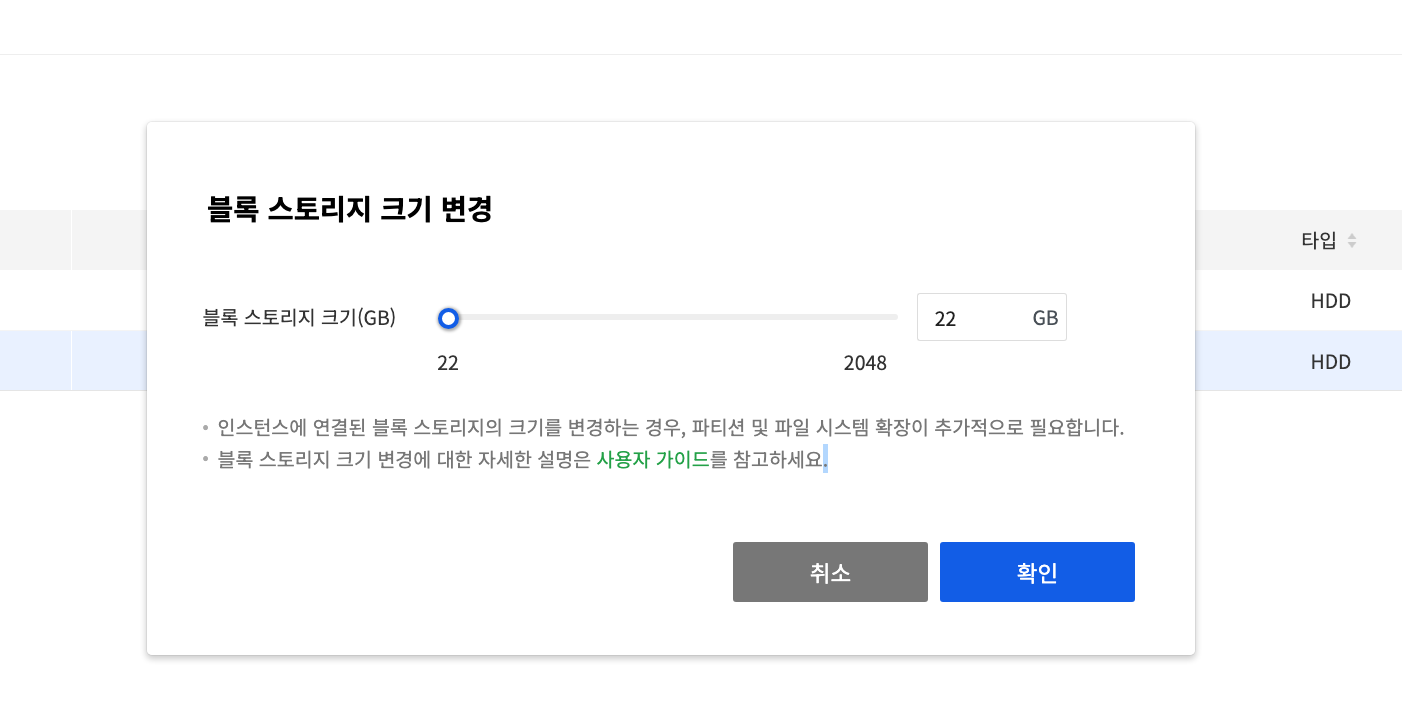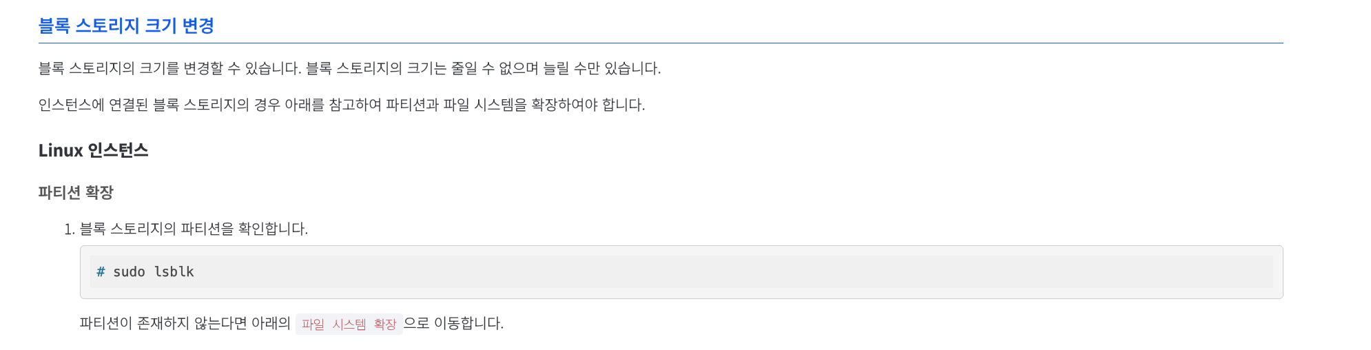 실행 중인 클라우드 가상 머신의 볼륨 스토리지를 확장하였을 때, 클라우드 콘솔 내 용량 확장 작업 외에 직접 인스턴스에 접속하여 명령어를 입력해 작업해야 하는 부분이 있다.