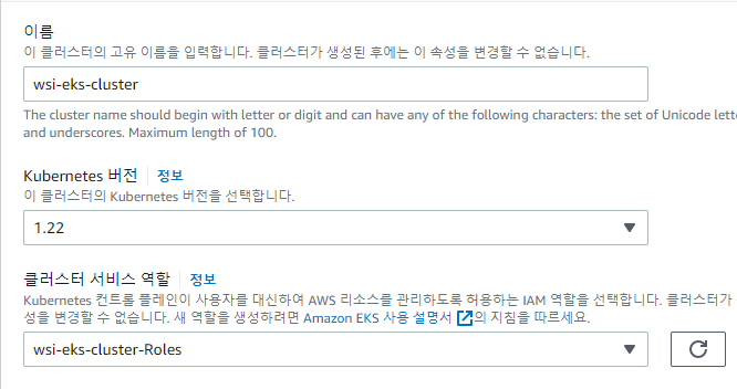 Create Role - RoleName: wsi-eks-cluster-Roles