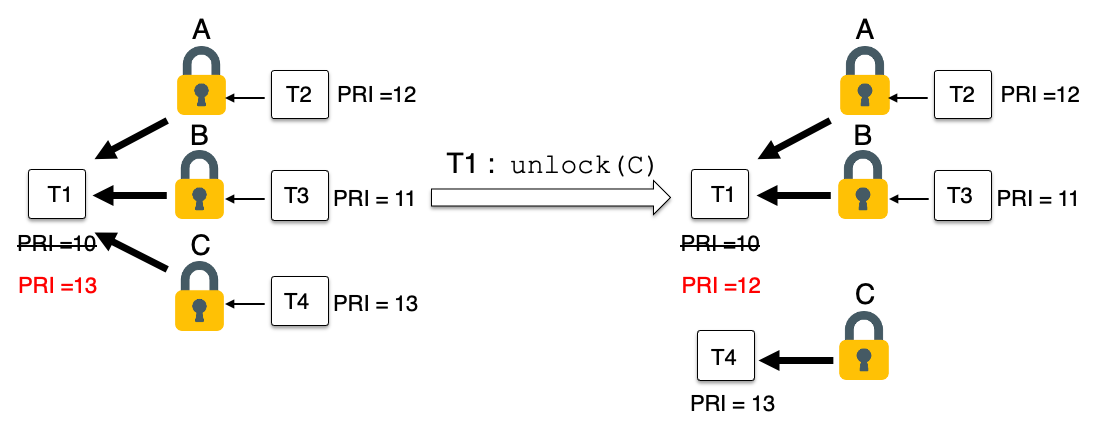 을 반납하는 상황이다. 그렇기 때문에 우선순위가 가장 높은thread