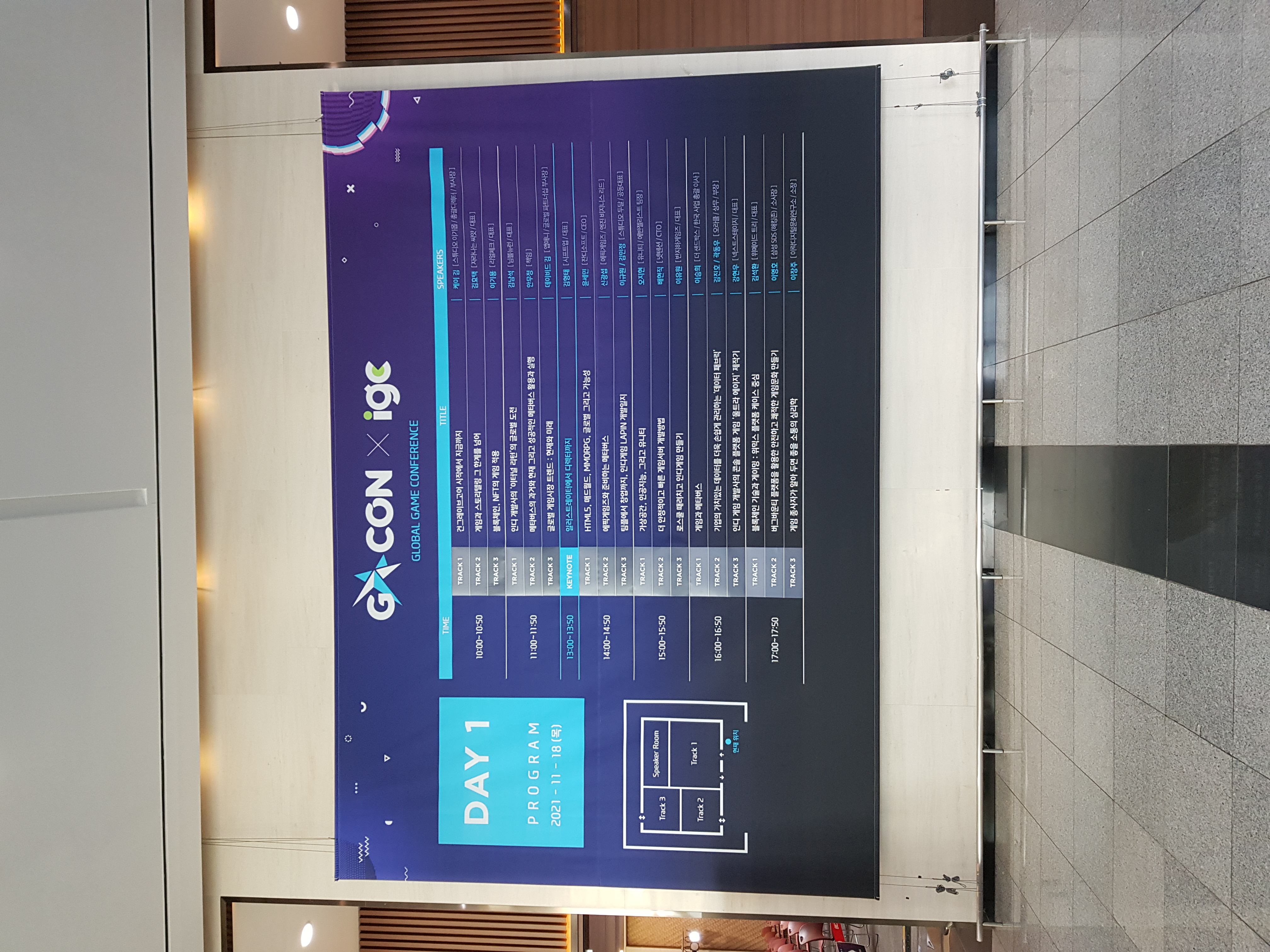 이번 컨퍼런스에 지금은 좀 덜하지만 그 당시 핫했던 메타버스 관련 강연이 많아 많은 증권사 직원, 통신사 직원, 기자등 게임 보다는 이쪽 관련 보고서? 작성하러 출장 오신 분들이 많이 계셨던것 같습니다. 대부분의 트렉들이 강연자분들의 많은 시간을 들여 준비하셨겠지만 아쉬웠던 트렉도 있었던것 같습니다.