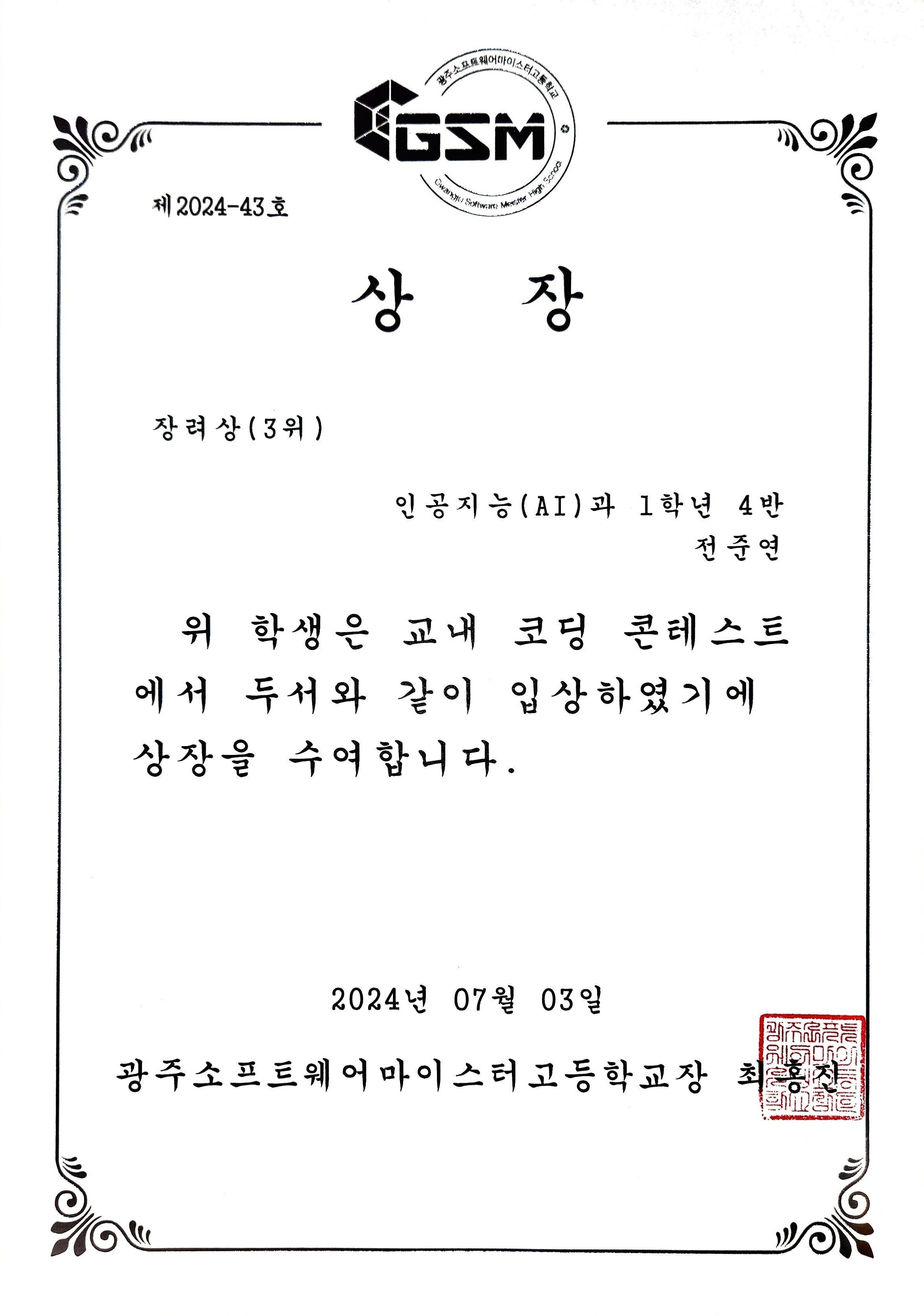 장려상이었다..! 정말 상상도 안 하고 있었는데 상을 받는 순간 노력이 보답 받는 기분이었다. 내 나름대로 최선을 다었했고 지치기도 했었지만 그걸 버틴 보람을 느낄 수 있었다.