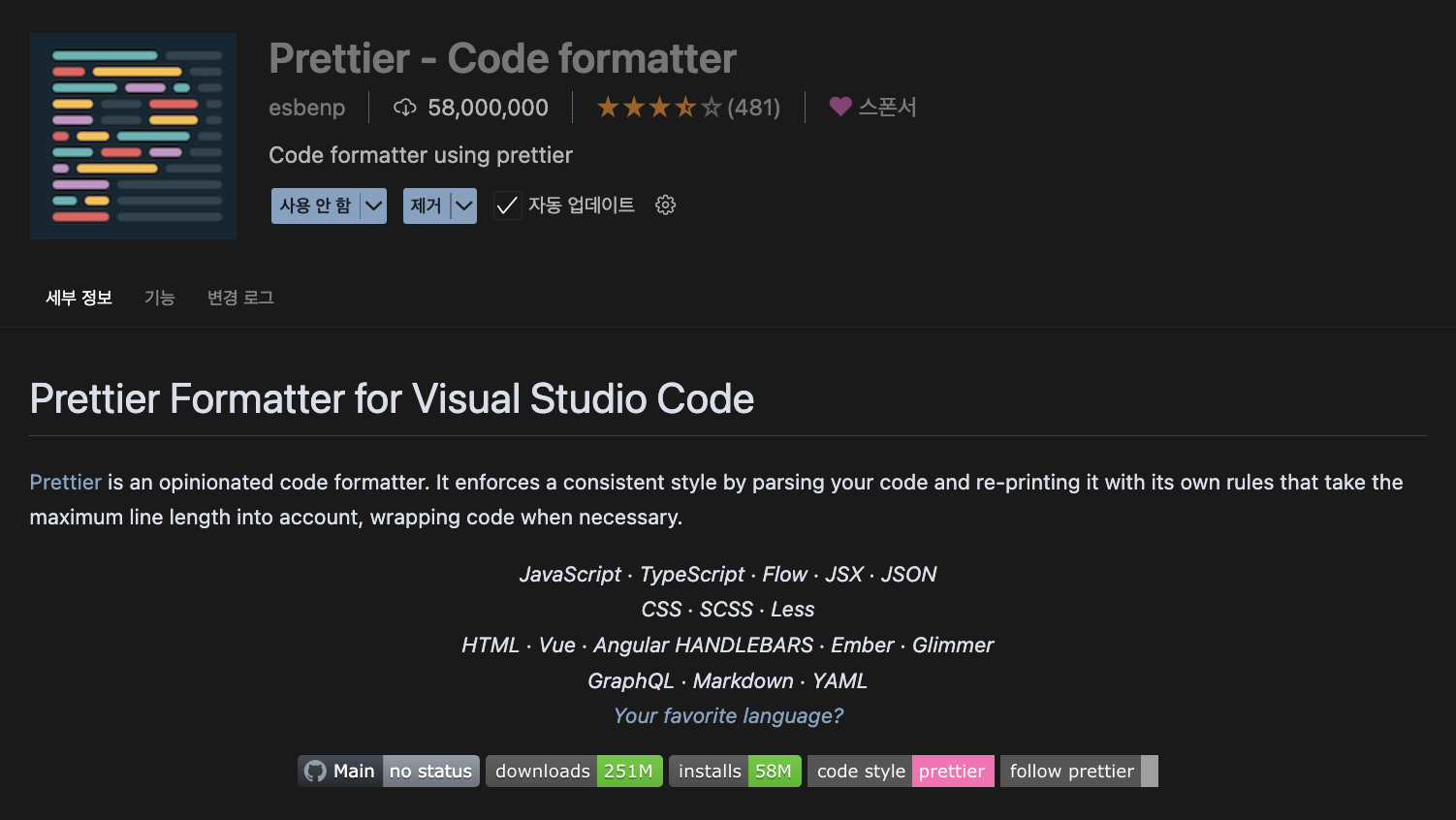 각 옵션에 대한 더 자세한 설명은 Prettier 공식 문서를 읽어보는 걸 추천한다.