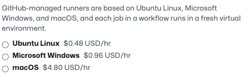 저희 회사의 경우, 빌드용 Mac Mini가 따로 존재했기 때문에 시간 단축과 비용 절감을 위해 self hosted runner 방식을 선택해 사용했습니다. 특히, Apple의 macOS 환경은 다른 플랫폼에 비해 하드웨어 및 라이선스 비용이 높아 GitHub에서 제공하는 가상 macOS 환경의 실행 요금이 상대적으로 더 비쌌습니다.