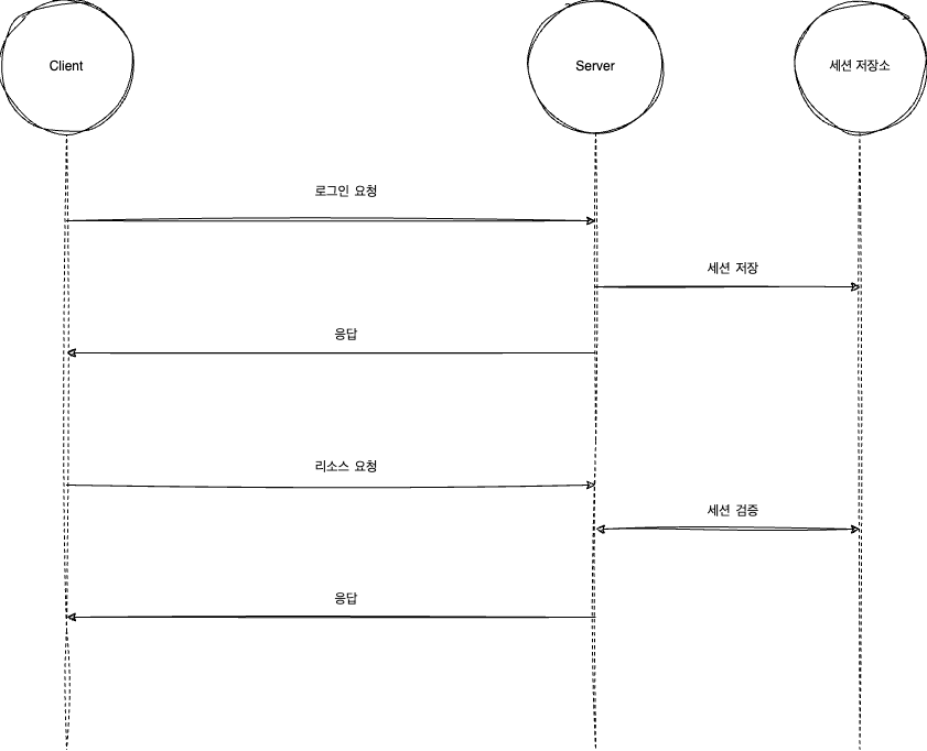 이후 클라이언트는 저장된 쿠키(Session Id)로 서버에 요청을 보내고 서버는 받은 Session Id로 검증하고 응답하는 방식입니다.