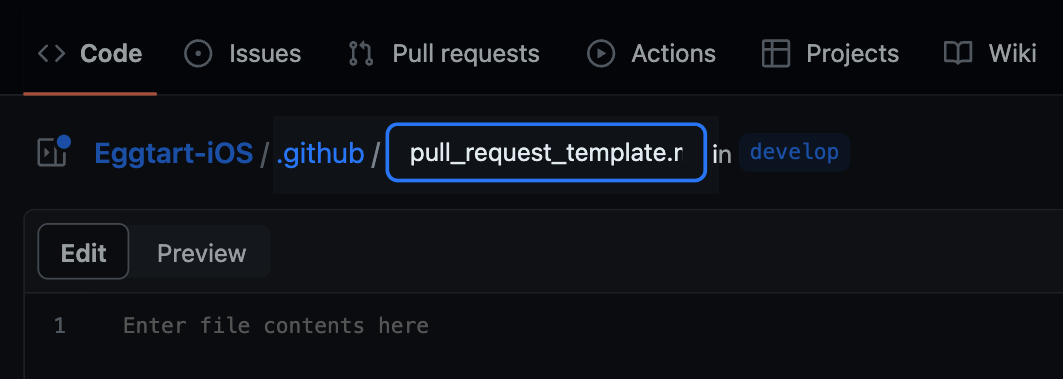 아래 처럼 템플릿을 작성하고 Commit changes.. 누르고 Commit directly to the develop branch로 브랜치에 바로 밀어 넣어줍니다.