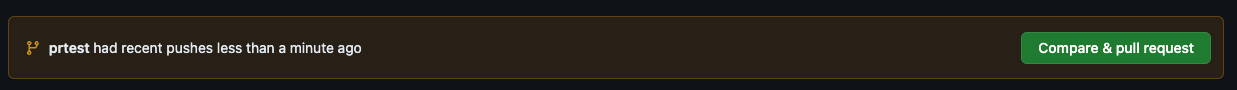 이런식으로 Compare & pull request라는게 뜹니다. 버튼을 눌러서 들어가봅시다